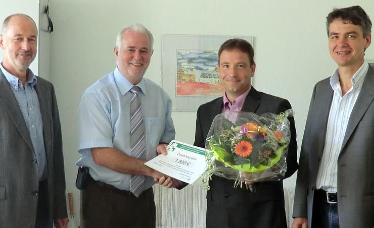 Autor: nnzIm Beisein der beiden Schulleiter übergab der zuständige Minister Jürgen Reinholz den Scheck an den Vorsitzenden des Vereins der Freunde und Förderer des Gymnasiums, Sven Luther. Diese Zuwendung dient als Zuschuss für die Anschaffung eines Windkoffers, der sowohl im Rahmen der Projektwochen als auch in den naturwissenschaftlichen Fächern Physik, MNT, Biologie oder Chemie zum Demonstrieren und Erforschen alternativer Energien Verwendung finden soll.